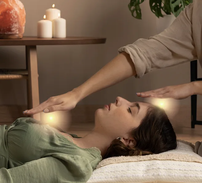 Reiki is a non-invasive, hands-on healing method that activates your body’s natural ability to heal itself. The Reiki practitioner gently places their hands on or near the body to guide energy flow and release blocked or stagnant energy. This promotes deep relaxation, mental clarity, emotional healing, and physical well-being.